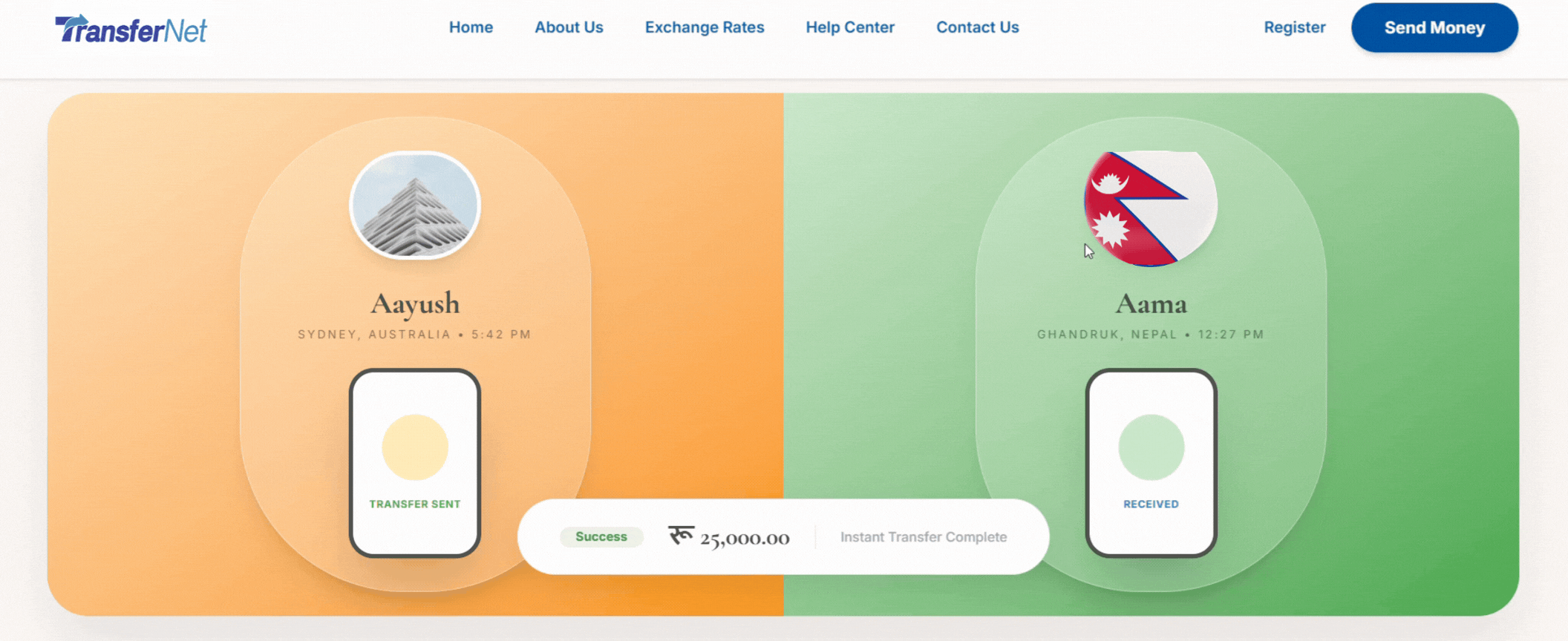 Choose Transfernet for low fees, live exchange rates, and 24/7 support